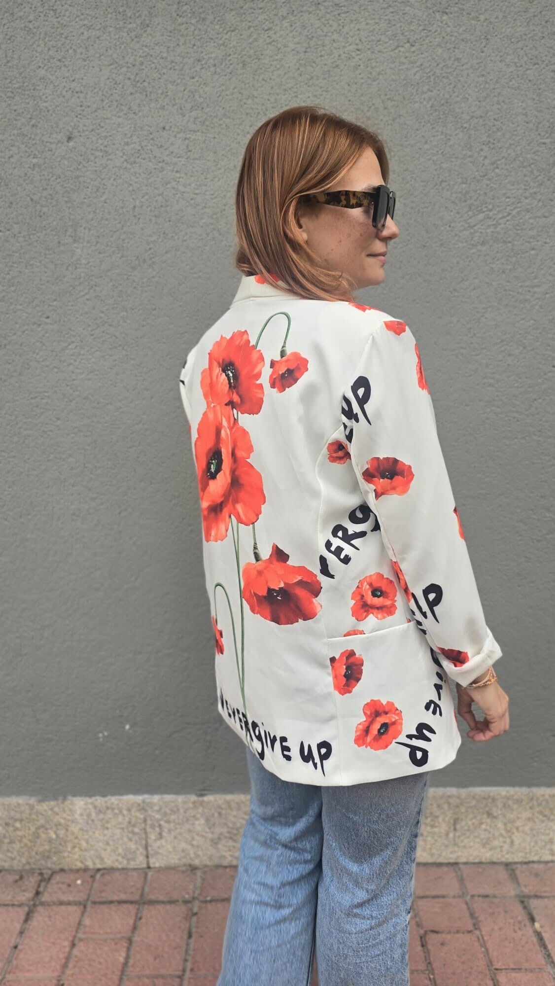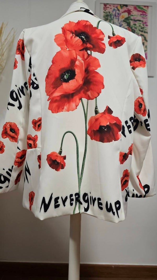 Original blazer con un precioso estampado floral y mensaje motivador.