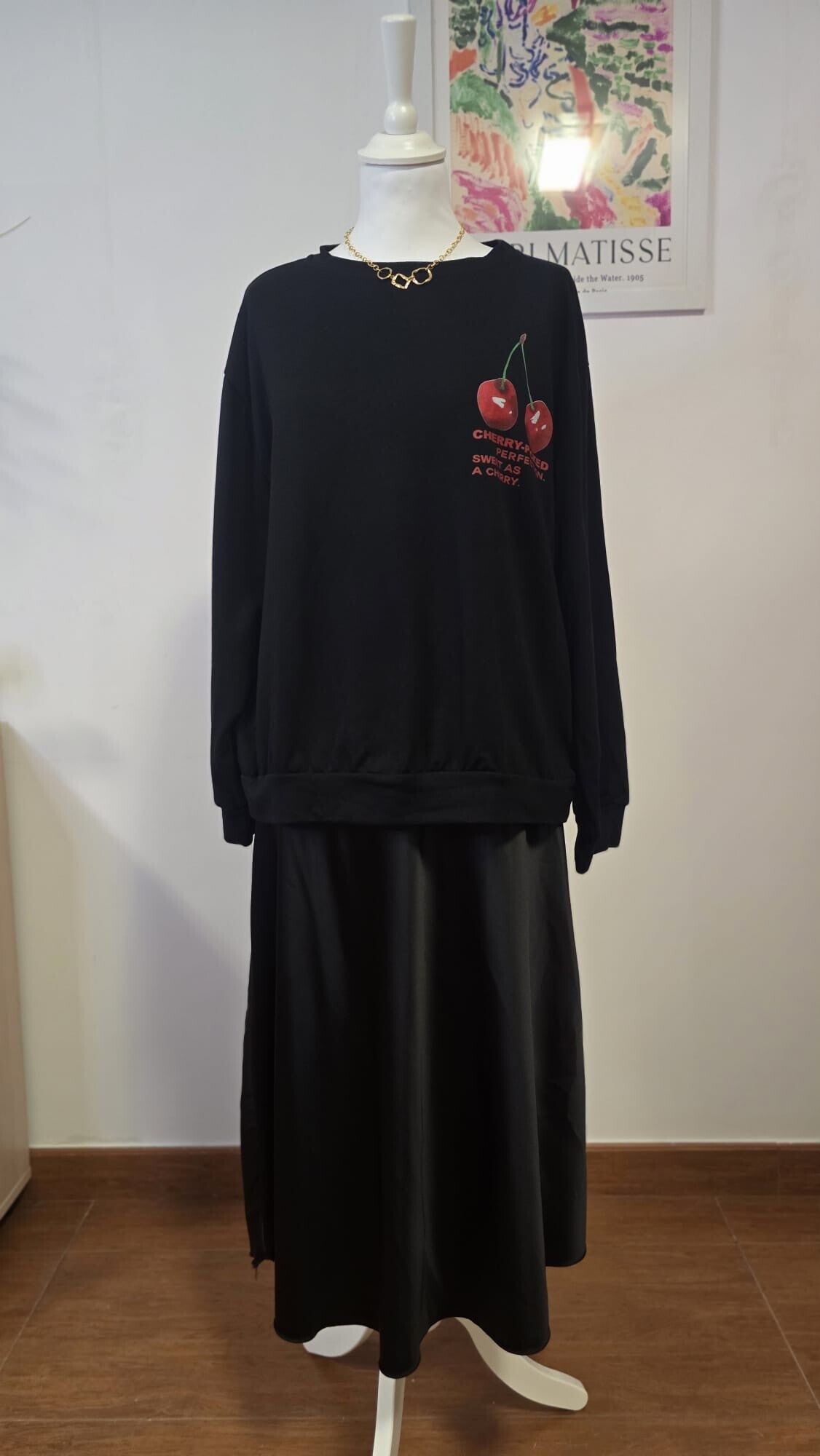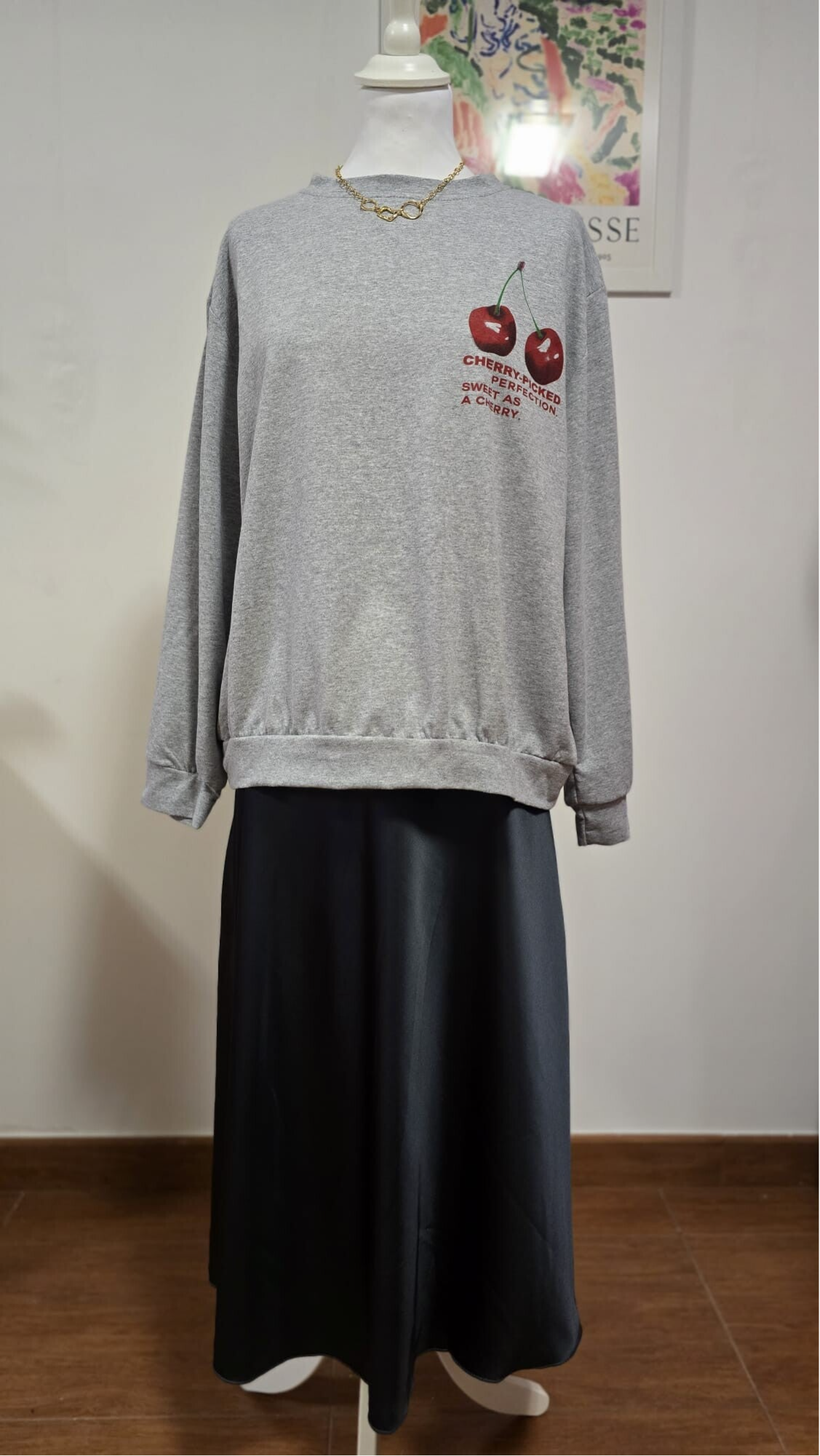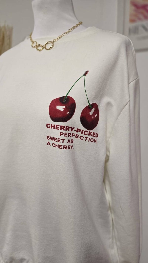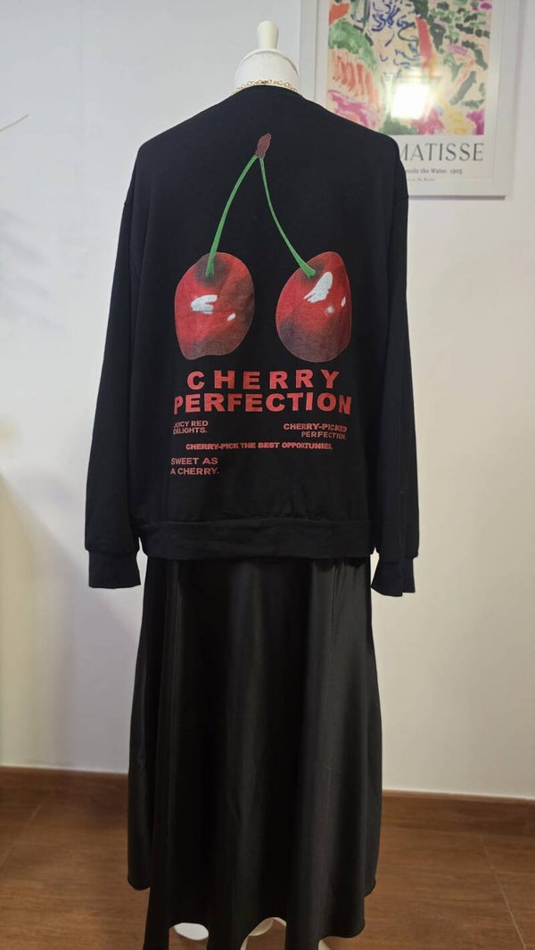 - Sudaderas lisas con estampado de cereza en la parte delantera y trasera.