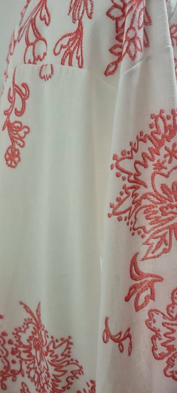 Original camisa oversize en color blanco con estampado de flores simulación a bordado en color rosa.